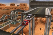 "Loops, elevated turns, breathtaking drops and impressive jumps succeed each other at lightning speed on these ultra-fast courses. Whether at ground level or dizzying heights, the asphalt roads with guard rails will forgive small trajectory errors, but not driving mistakes!"
