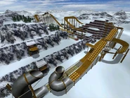 The Snow environment makes no bones about combining blocks completely covered with snow or even ice with track sections made of "special traction” wood.